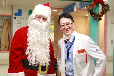 横浜市立大学附属病院小児科病棟には、毎年クリスマス時期にプレゼントを抱えたサンタさんをご案内し、入院中の子ども達やご家族と楽しい時間を共有させていただいています。