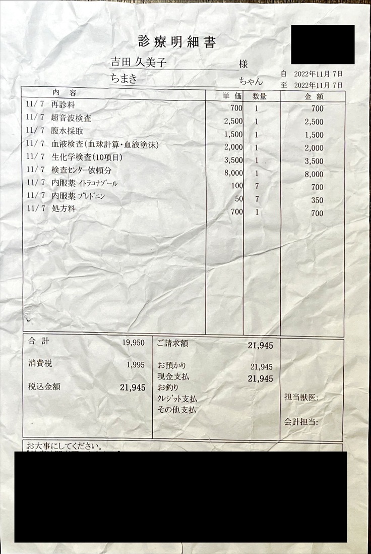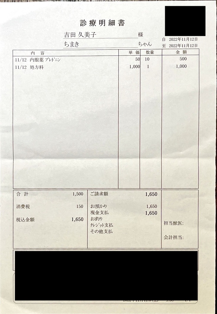 これよりも体重がふえれば薬代ももっとかかります。(元気ならそれは嬉しい悲鳴です)
