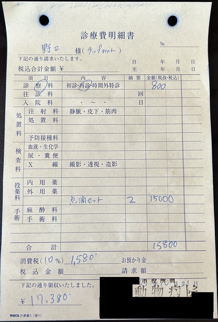 点滴をし終わった後に病院に行ったため、正確な体重は判らず…