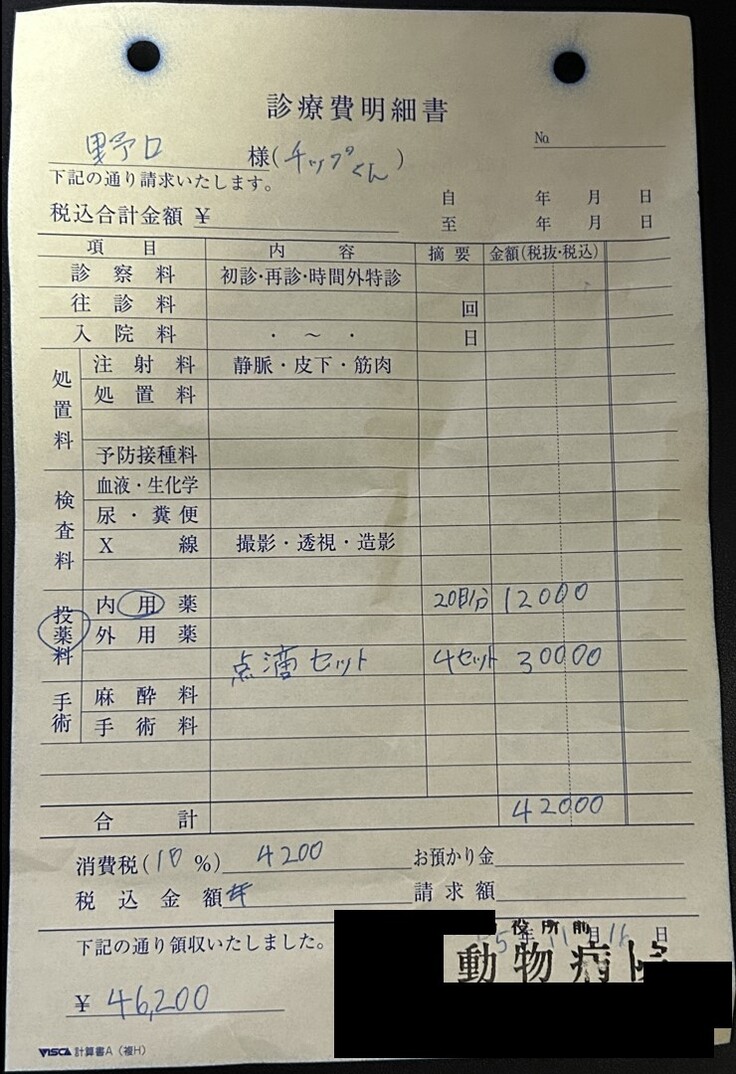 【ちっぷ】の様子変わりなければ病院には連れてこないでよいとのこと
