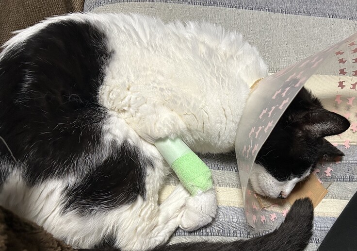 点滴中はひたすら撫でまわして、動かないように話しかけるようにしてます。