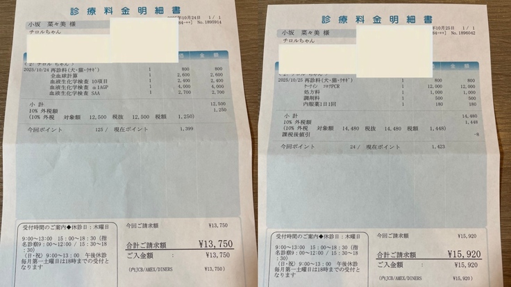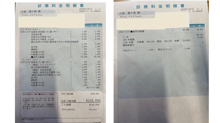 この薬は高価ですがしっかり投薬を続ければ寛解するそうです。しかし薬代だけで2週間で、1匹84000円×2匹なので168,000円。