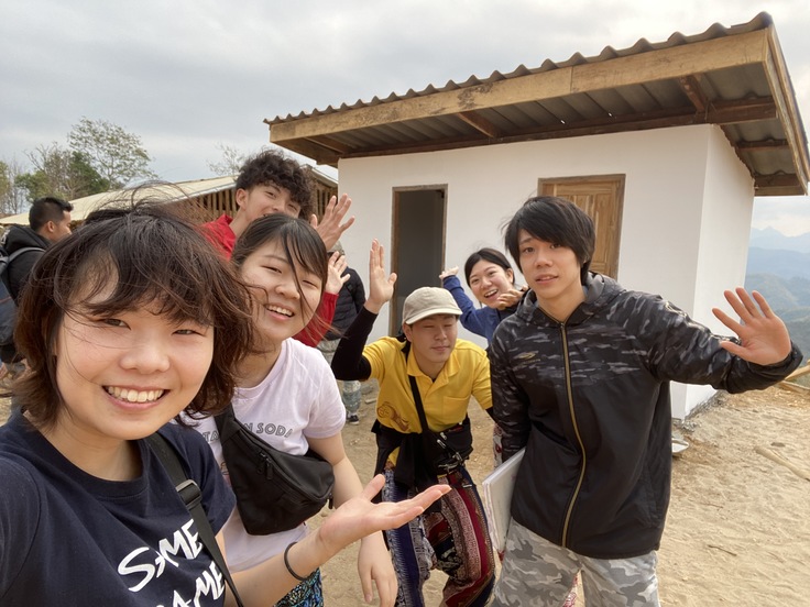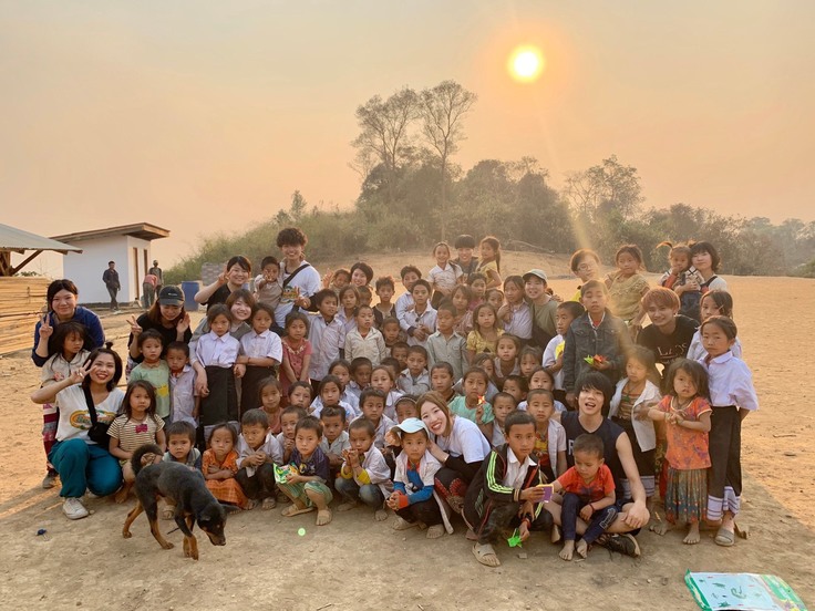 2月初旬に、スタディツアーに行って参りました。継続して支援しているホエイカン村、コックハン村に加え、メンバー全員では初めてプークー村に訪問しました。村人総出で私たちを温かく迎えていただいて、料理もご馳走していただき、とても嬉しかったです。校長先生たちとこれからの支援の方向性について共有し、子供たちとも親睦を深めることができました。クラウドファンディングの当初の予定では、私たちが訪問した時点で3教室とトイレが完成しているはずでした。しかし、送金の段階で手違いがあり、建設に着手するのが遅れてしまい、私たちが訪問した時はトイレのみ完成している状態でした。