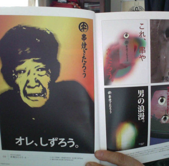 女 川町を対象とした「アイデアの力と観光で地域を元気にするプロジェクト」は、河北新報社の主催の元、今年8月より参加商店と東北を中心に活動するクリエーター約60人のクリエー ターたちが、何度も現地と各商店を訪ねて打ち合わせ・取材・撮影などを行い完成させた復興支援ポスターです。クリエーターたちが情熱を傾けて制作した、面白 い、人をひきつける、元気のあるポスターは、女川町の新しい観光のポイントです。一般社団法人 知的創作研究所では、きぼうの鐘商店街へ「串焼きたろう」さんのポスターを寄贈完了しました。