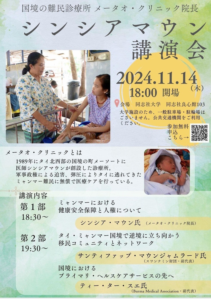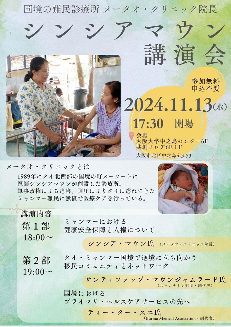 【メータオ・クリニック】シンシア・マウン院長来日と講演会のご案内