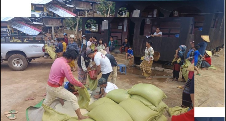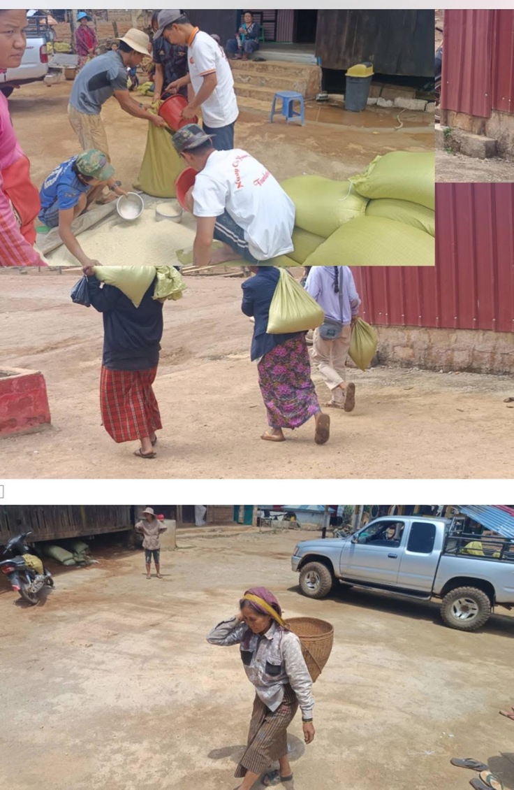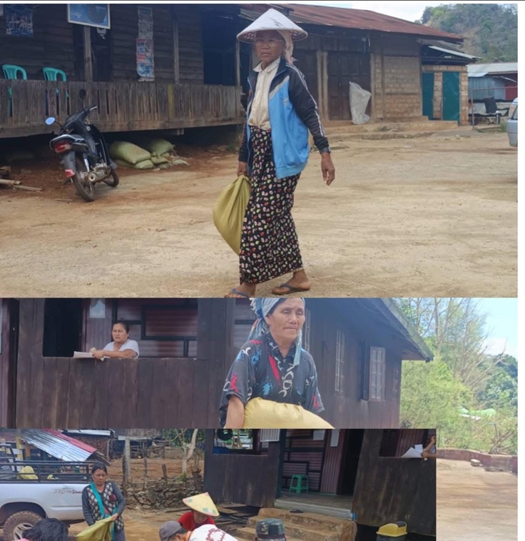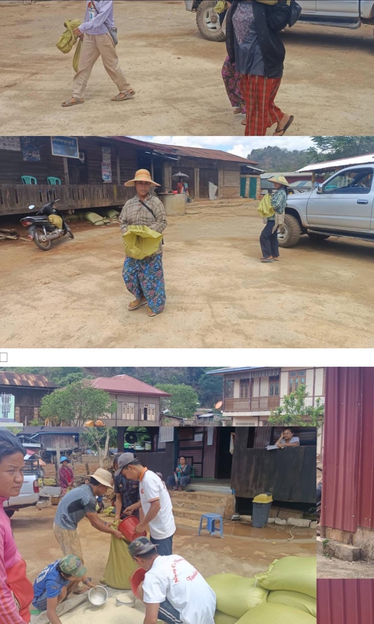 第四弾では、地震の被害を受けた南シャン州にいる 避難民(IDP)129世帯に対し、お米1,998kgを支援しました(1袋74kg入りを27袋調達)。現地の責任者から当会のメンバーに、「お米が全くない状態で助けてほしい。今まで寄付してくれた団体や寄付者は、地震の影響で来なくなったため、非常に困っている。避難民は空爆に地震といった二重の被害を受けている。どうか避難民のことも忘れず、目を向けてほしい。」との緊急要請があり、支援させていただきました。支援額は、20万円です。