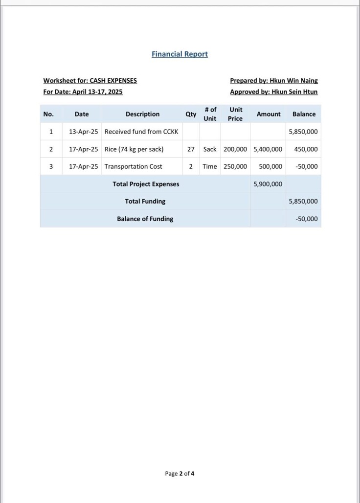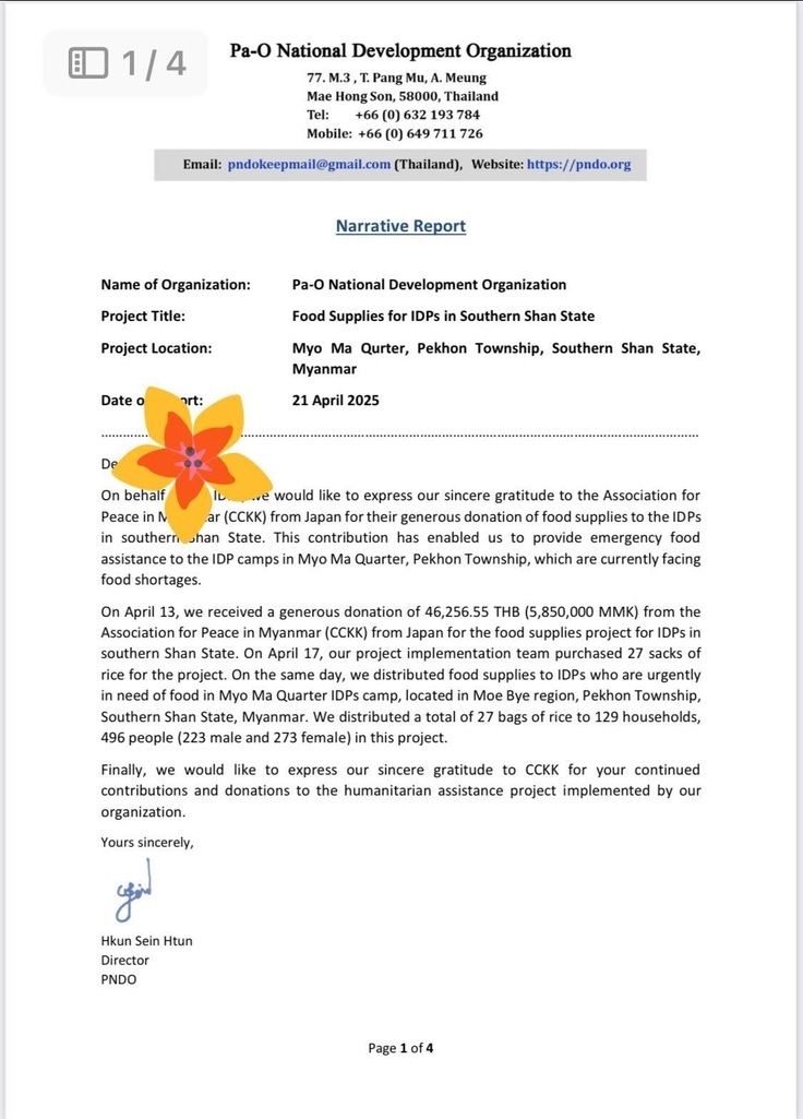 大変お世話になっております。「一般社団法人 ミャンマーの平和を創る会(チィチィキンキン)」事務局です。ミャンマーへのご関心、温かい応援をありがとうございます。大地震による緊急支援第四弾の活動様子をご共有させていただきます。