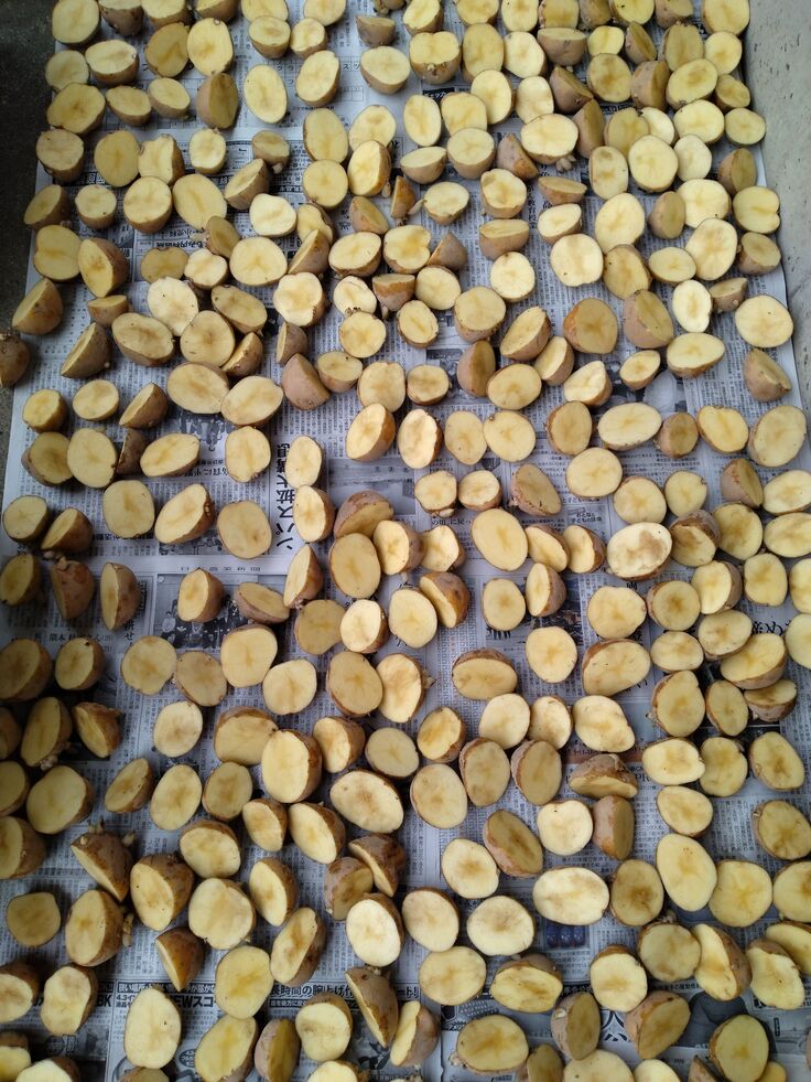じゃがいもをより多く収穫できるように、種芋を半分に切って、断面を乾燥させて病気の侵入を防ぎます。約300個を切るので、少し手間な作業でしたが、頑張りました!