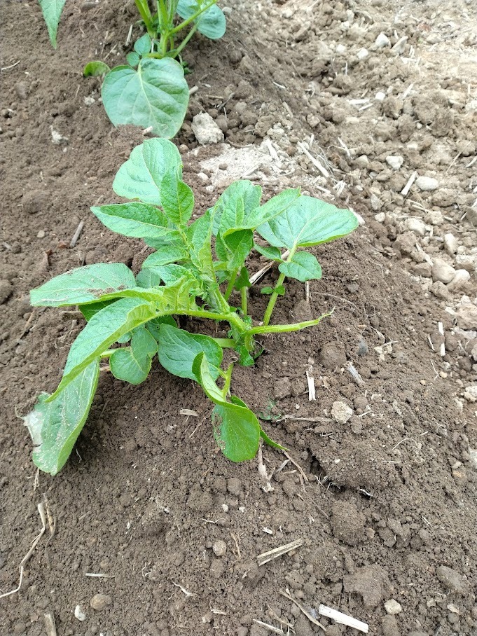 じゃがいもの芽が出てきて、大きく育ってきているのでじゃがいもの土寄せを行いました!
