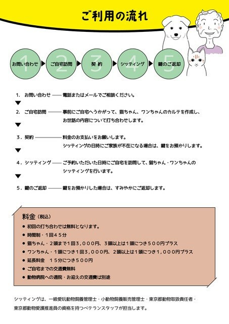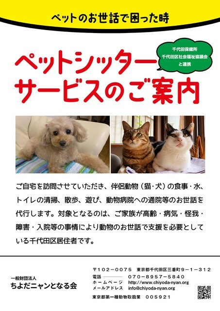 高齢・病気・怪我・障害・入院等の事情により動物のお世話で支援を必要としている千代田区居住者を対象にペットシッターサービスを始めることとなりました。