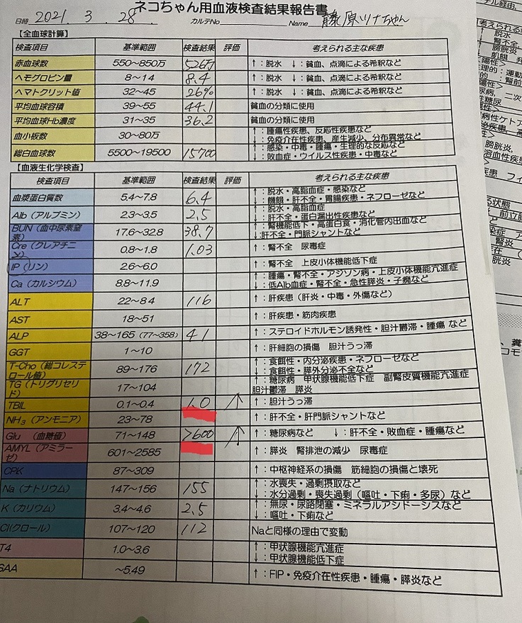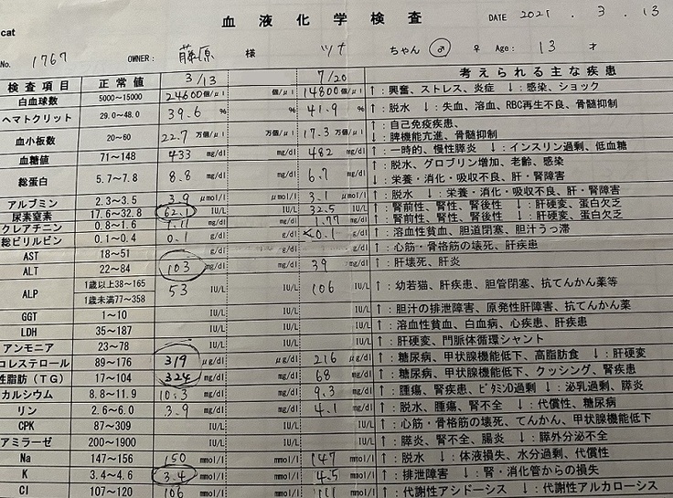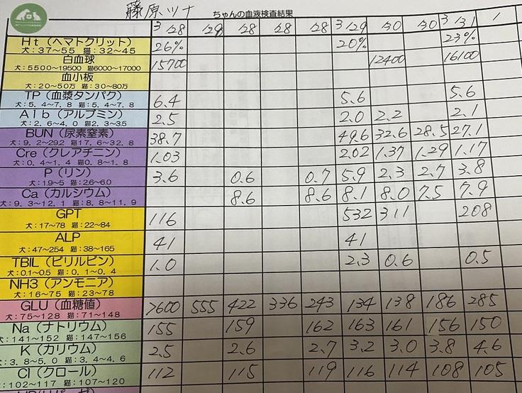 ツナは13歳と高齢である事、腎不全の数値も思わしくない事から入院前や治療途中で亡くなってしまう場合はあります。