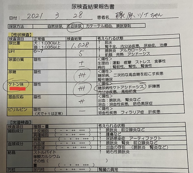 そしてその吐き気は膀胱炎からくることがあるため、抗菌薬の投与は早い段階で行うのもありかもしれません。ケトアシドーシスは糖尿病の悪化した状態ということで、適切に処置することで、その改善が見込めます。安定して飲食ができるようになれば通常通りのインスリン投与を開始または再開します。