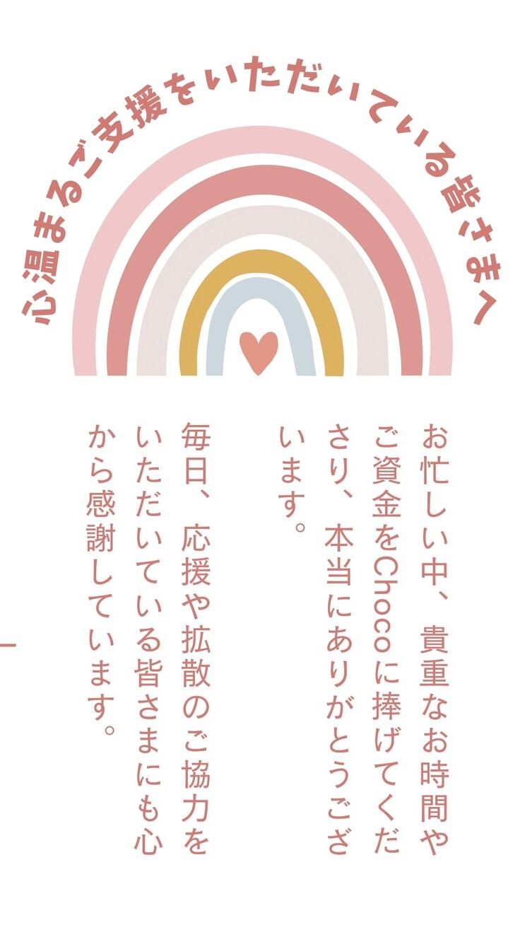 Chocoのためにご支援をいただき、誠にありがとうございます。