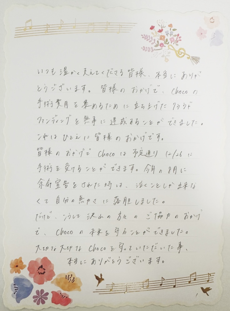 Chocoのためにご支援をいただき、誠にありがとうございます。