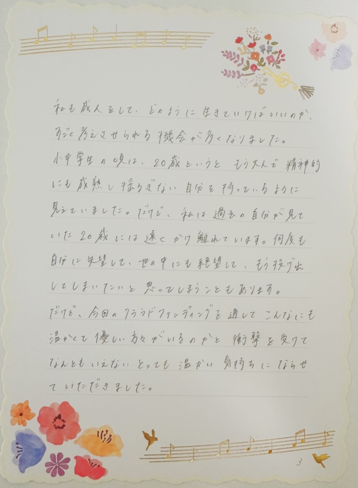 11/23のインスタライブで読ませて頂いたお手紙を活動報告でも載せさせて頂きます。