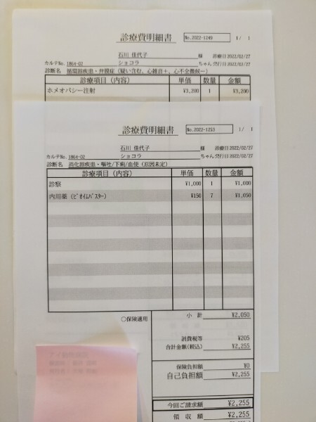 2/27(日)には、ホメオパシーの注射をしてきました。