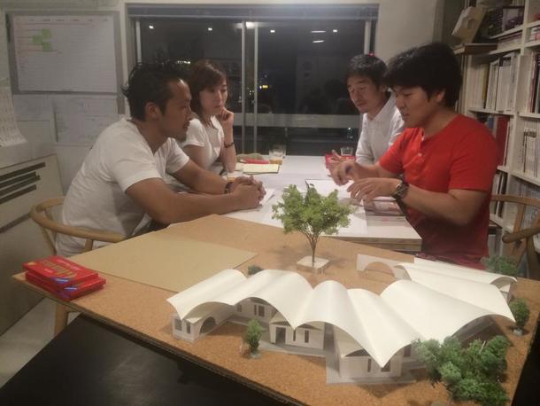 SUPER PIXEL Architects studio の方々と学校をどのような形にするのか、そしてどのように建設するのかミーティングを重ねます。この日は、前回のミーティングの内容を反映して、より具体的に模型をリニューアルしてくれました。