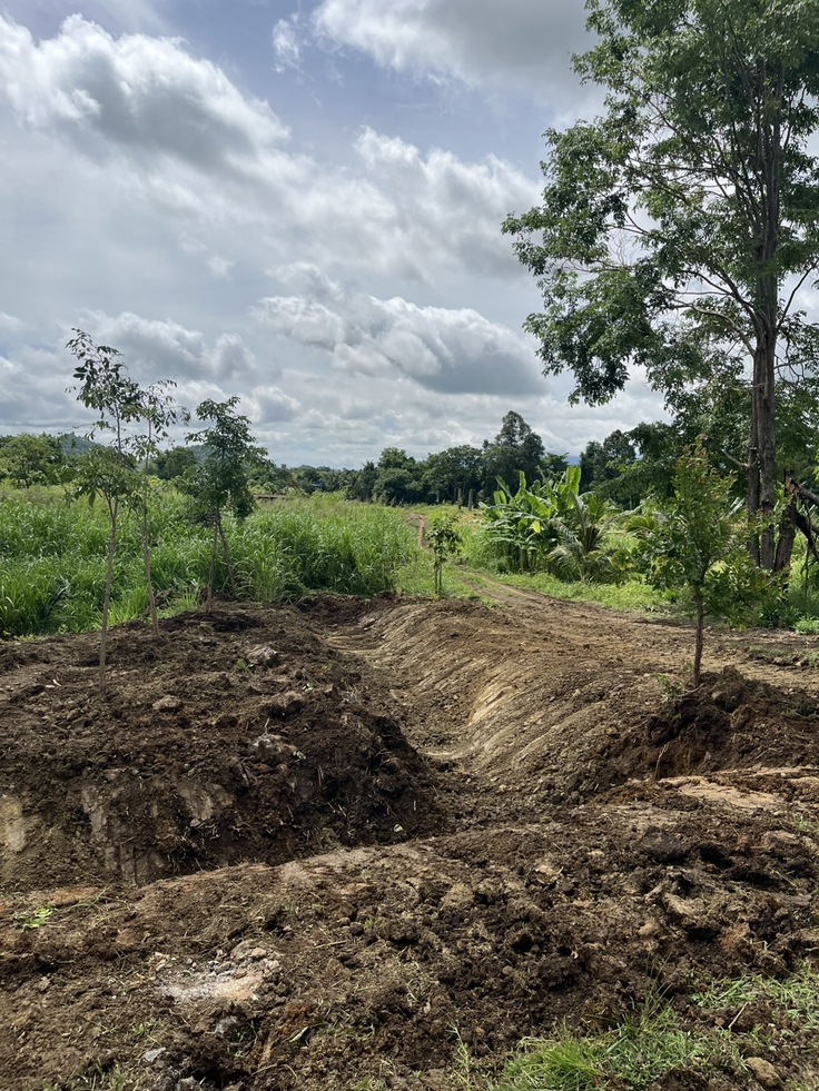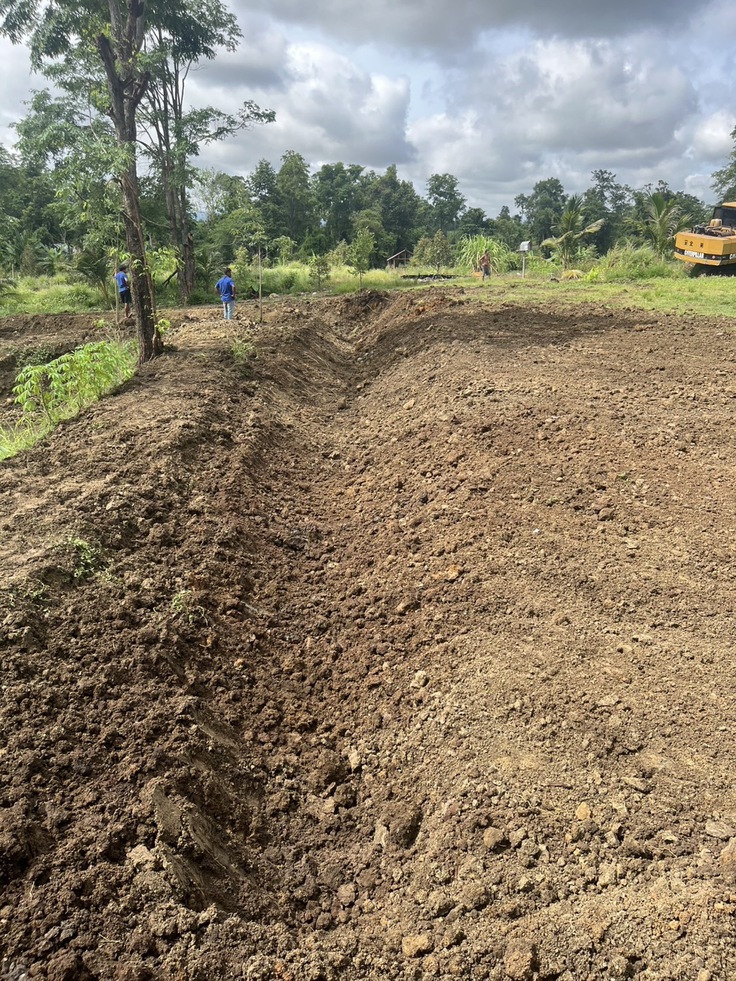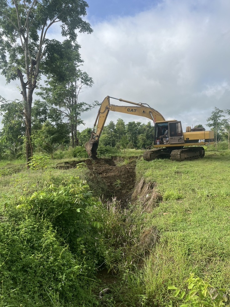 溜め池を掘るときに水を逃がす水路として掘った部分を重機を使って埋め直し、