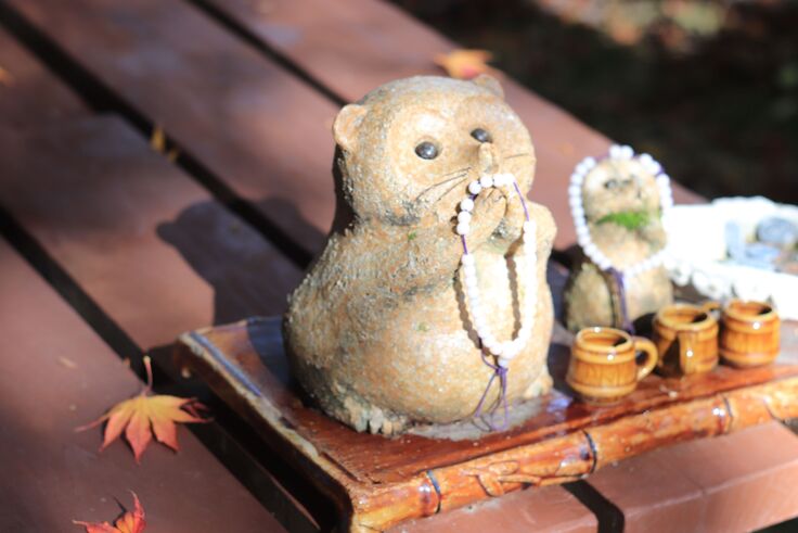 ⚫︎こぢんまりした参道に紅葉のトンネルが重なってる脇に置物たちがいらっしゃるのがかわいいし落ち着くしで長寿寺がだいすきです。推しのお寺です。