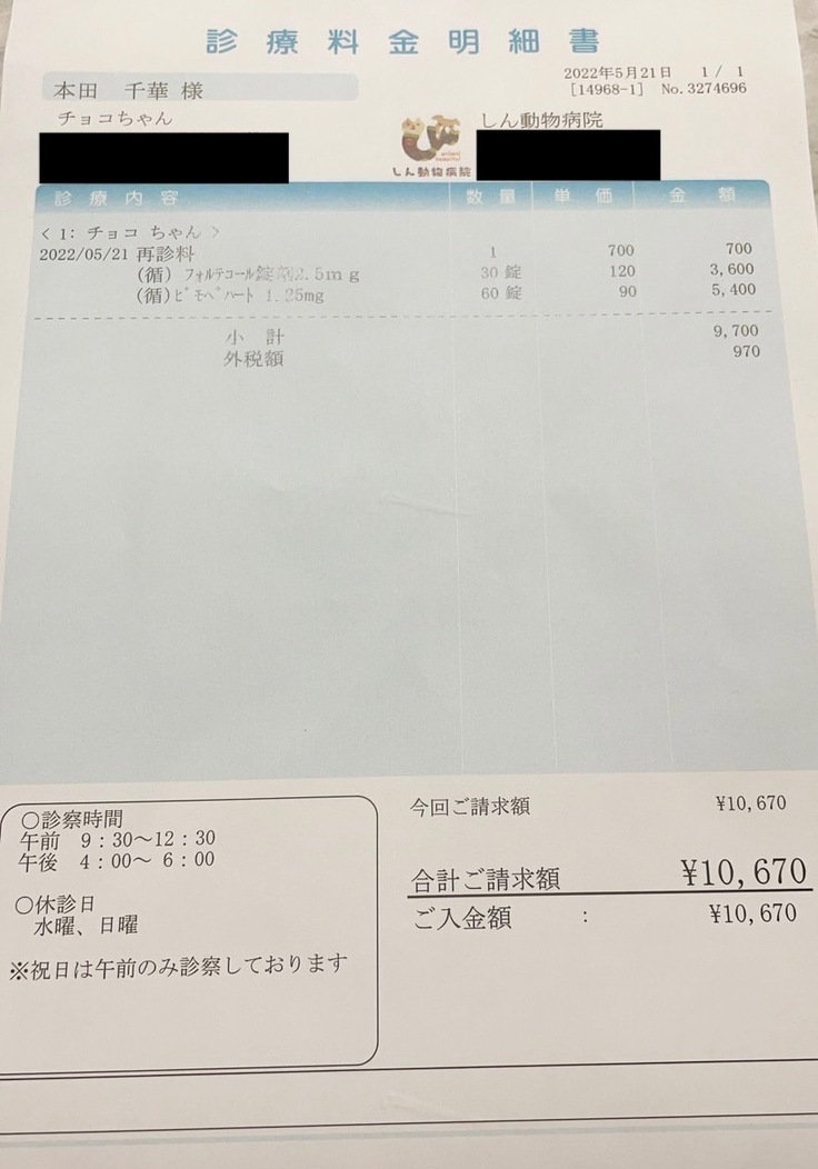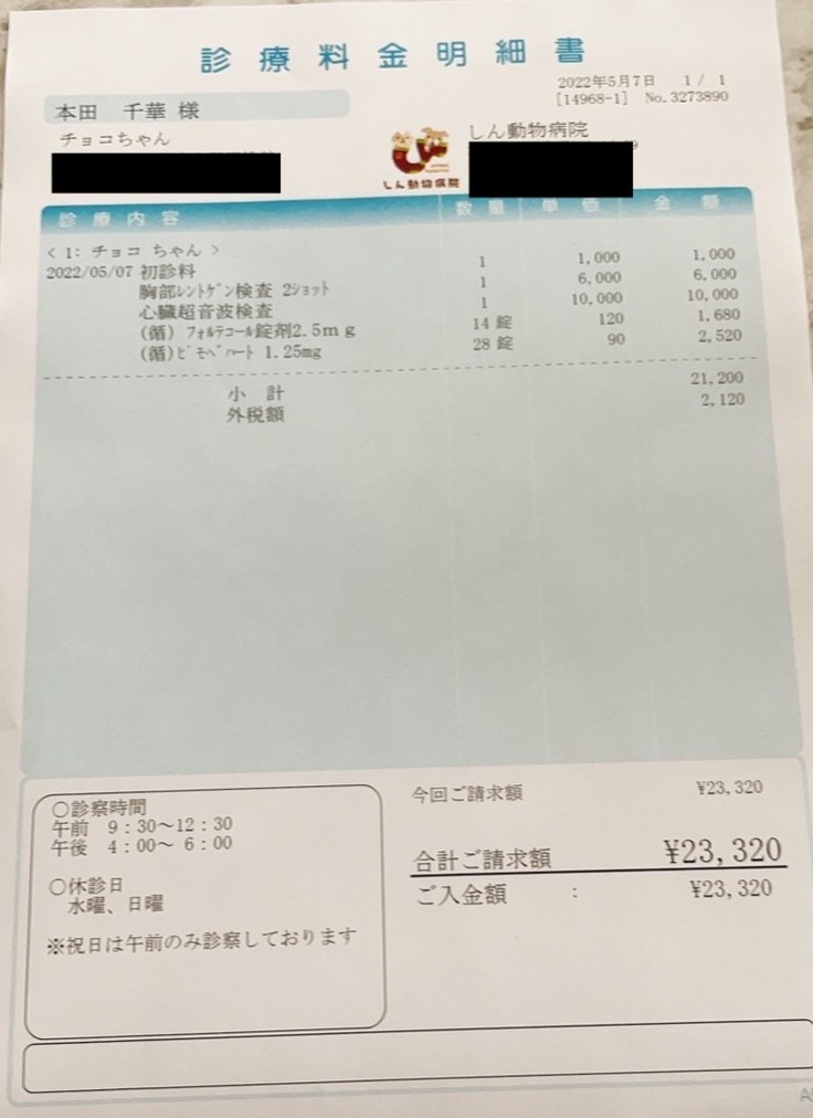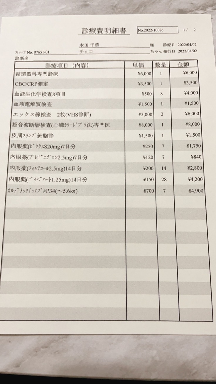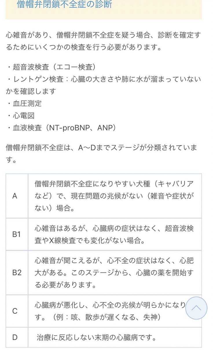 4月の定期検査の際に心臓に雑音がすると言われ詳しい検査をしましたら心臓肥大と言われ慢性僧帽弁閉鎖不全症ステージB2と診断を受けました。