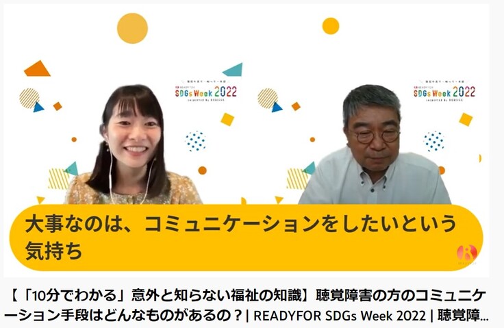 「READYFOR SDGs Week 2022」の特別企画【「10分でわかる」意外と知らない福祉の知識】でも当協会の動画が公開されています。