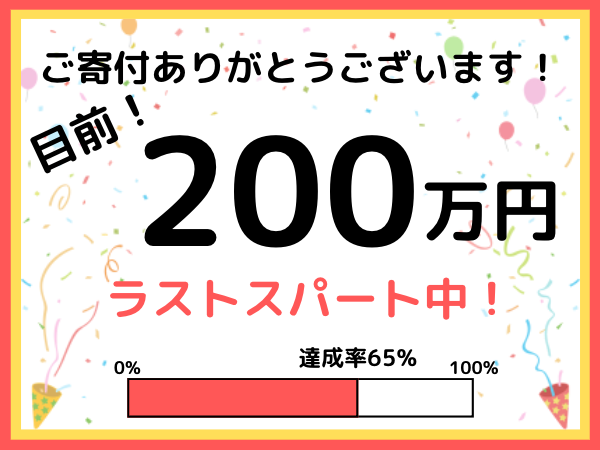 大台の200万円まで、のこり4万円というところまできました。みなさまのおかげです。本当にありがとうございます。