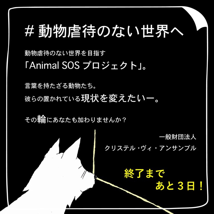 現在 当財団では、動物虐待防止啓発アニメーションと絵本の制作費を募るクラウドファンディングを実施しています。