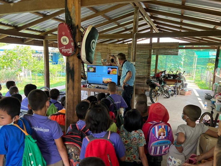 私たち国際奉仕委員が制作した日本に関する動画を子供たちが視聴し、実際に日本文化に触れました。
