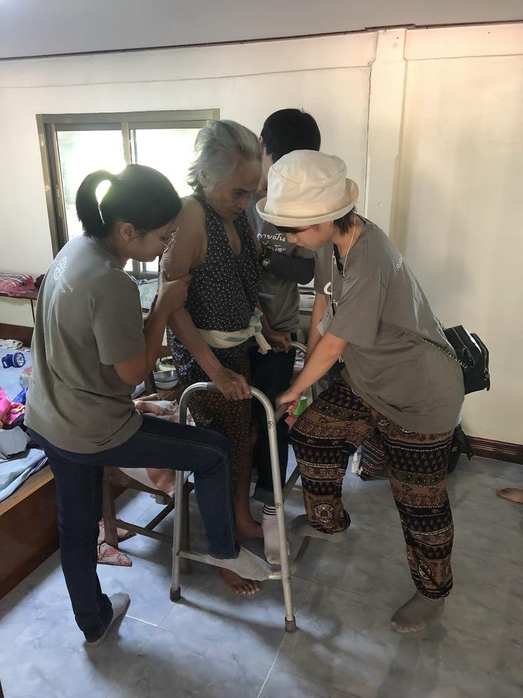 首都バンコクから離れたチャイナットには大きな医療施設などがないため、体の不自由な高齢者には自宅訪問を行い、日々体調管理を行っています。