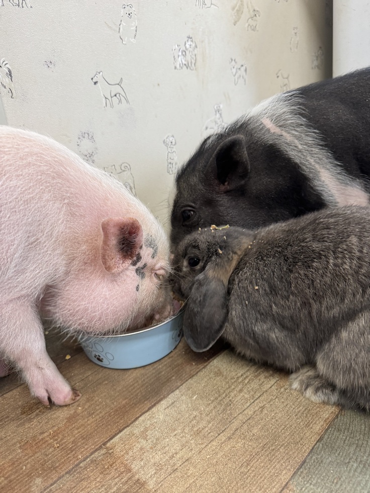 新年早々に仲間入りしたミニブタのポパイとポンチョもスクスク成長し、3倍ほどの大きさになりましたw