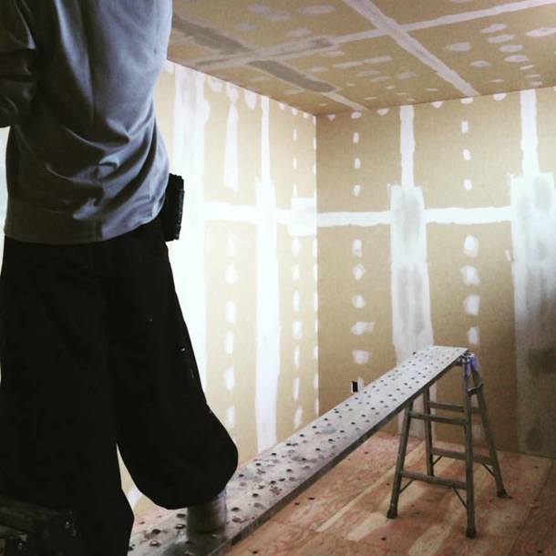 壁の造作がほぼ終わり、現在塗装前の下地塗りを