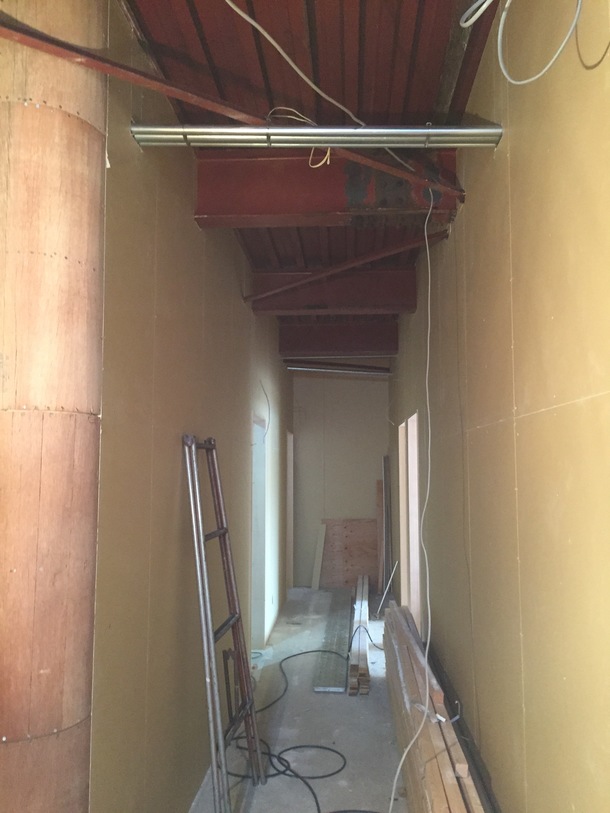廊下は壁をスラブ(天井)下まで貼ってみると高さがでる