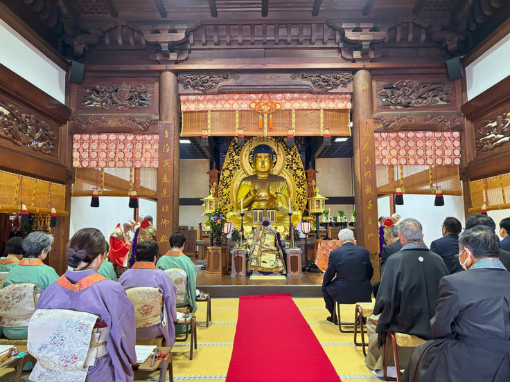 朝のやわらかな光の中、中尊寺本堂では、厳かに藤原四代公追善法要が営まれました。