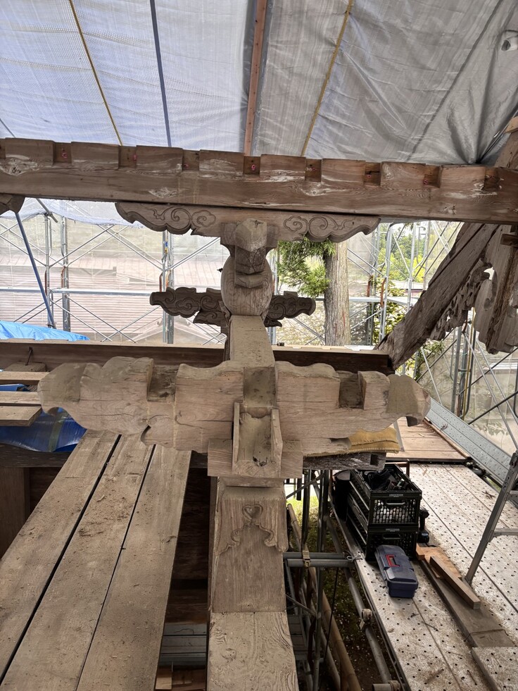 さらに翌週には、化粧垂木も撤去され、破風板・棟木・化粧軸部などを残すのみとなりました。