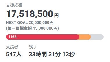【残り1日】皆様からのご支援により、目標金額の116%まで到達しました