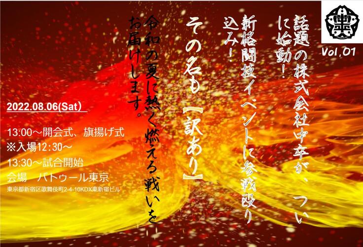 第一回素人格闘技イベント『訳あり』を2022年8月6日に開催決定しております。