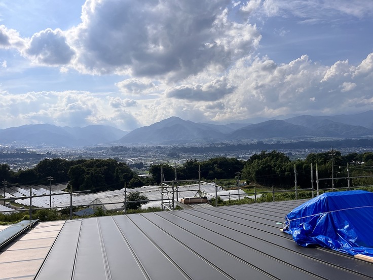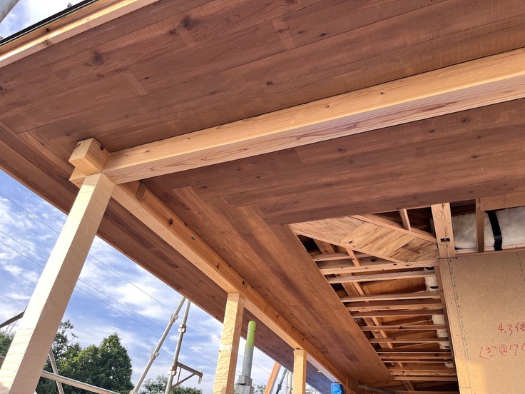 屋根も張り終わり、設計士さんと一緒に屋根が見えるところまで登らせていただきました。