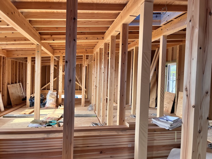 こちらは2階の客室ができる場所。まだ内部は柱のみなので、これから各部屋が作られていきます。