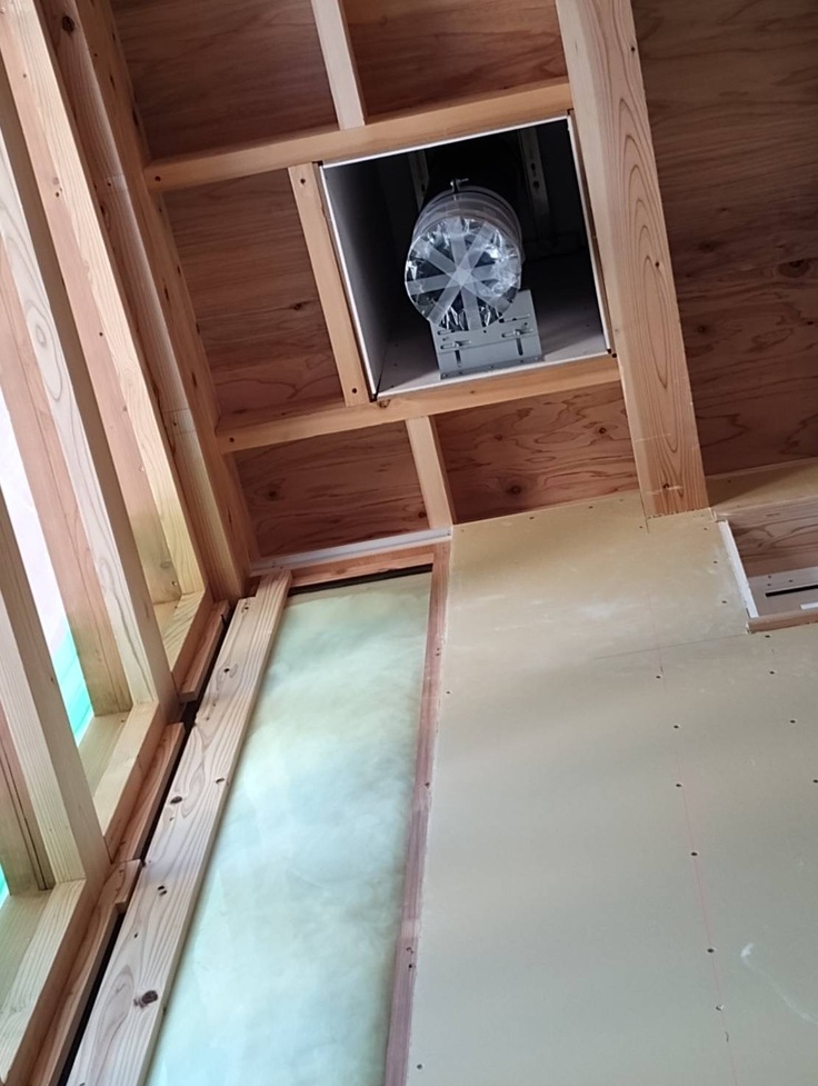 カフェ、レストランスペースに置かれる薪ストーブの煙突工事も行われました。