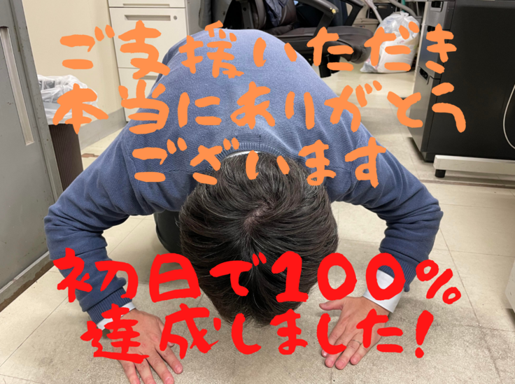 初日で100%達成しました。本当にありがとうございます。
