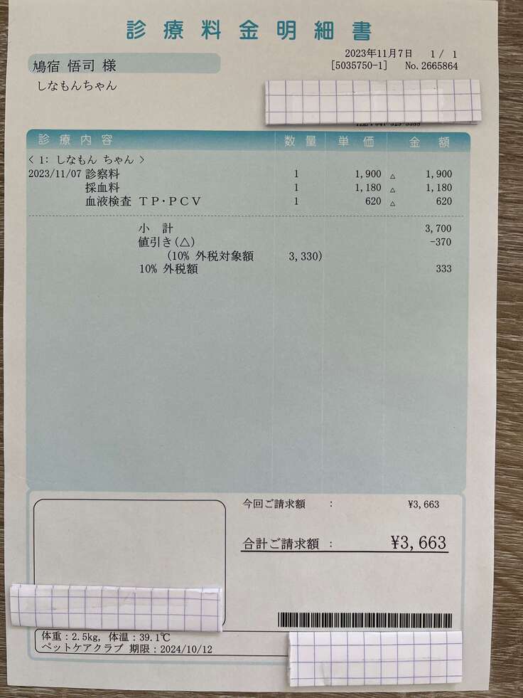 11月7日の診察代です。