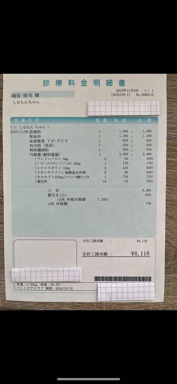 まだ、生後6ヶ月なのに、何度も何度も注射を刺されるしなもん・・・