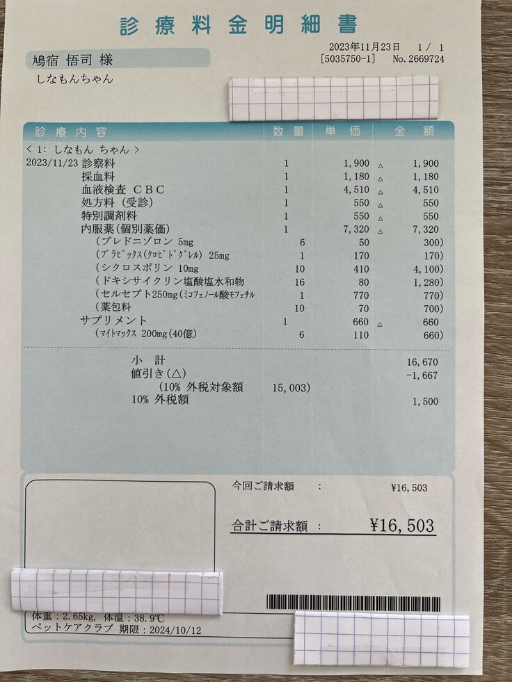◆11月23日(木曜) しなもんくんの様子と検査結果