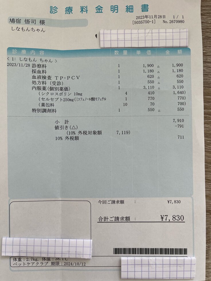 ◆11月28日(火曜) しなもんくんの様子と検査結果