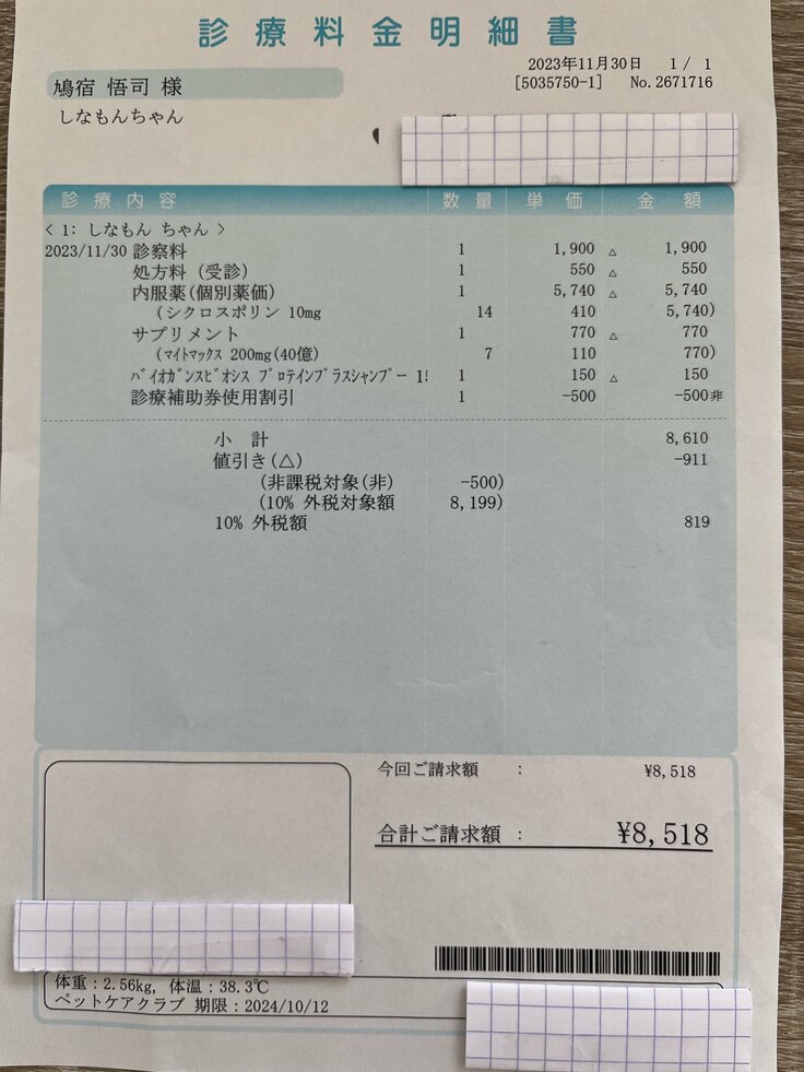◆11月30日(木曜) しなもんくんの様子と検査結果
