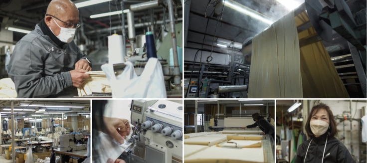 - 工場で生産する過程で余ってしまった生地(残反)を使 用することで、生産ロスをなくす