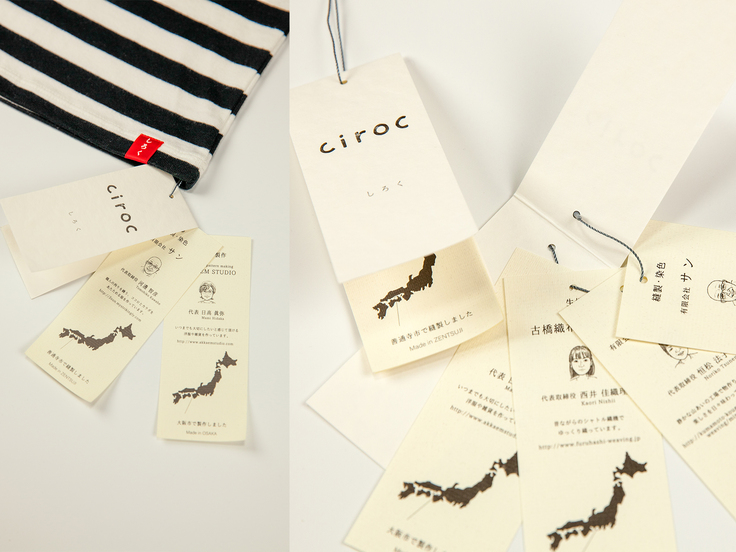 「この服がいつ、どこで、どのような経緯で作られたのか」というトレーサビリティへの関心が高まっています。 cirocでは「生産者の顔」や「こだわり」「想い」がお客様にもしっかり伝わる広告宣伝を実施しています。洋服のタグに「縫製工場の名前」「どの工場で織られた洋服か」を入れるなどして、弊社ブランド名だけでなく、洋服作りに携わった工場名なども印字。お客様の目に触れる機会が少なかった「工場」を全面に出し、川上(縫製工場・生地工場)・川中(製造メーカー)・川下(顧客)、三者の風通しを良くするブランドを作り、育てています。
