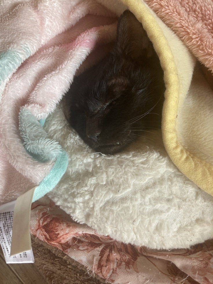 猫ちゃんからの温もりで…