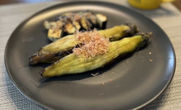 です!ポイントは少し長めに”20分間丸焼きにする”ことです。もちろん10分ほどでも十分に楽しめますが、20分焼くことで今までにないくらいトロットロで素材の旨みが凝縮したナスを楽しめます!