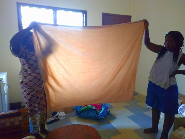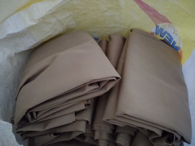 9月17日(木)、教科書と制服の布を購入しました。ベナンの公立学校では、ベージュというかカーキというか、そんな感じの色の制服を着用します。通常、親が布を買って、テイラーさんで寸法をはかり、制作を依頼するそうです。今回のプロジェクトでは、この布を買うところまでは私たちが行い、そのあとのサイズ測りや制作の依頼は、親にやってもらうことにしました。制作には、1人当たり1500セファ(日本円で300円ほど)かかるそうですが、クラリス曰く、これくらいは親にも負担出来るとのことです。